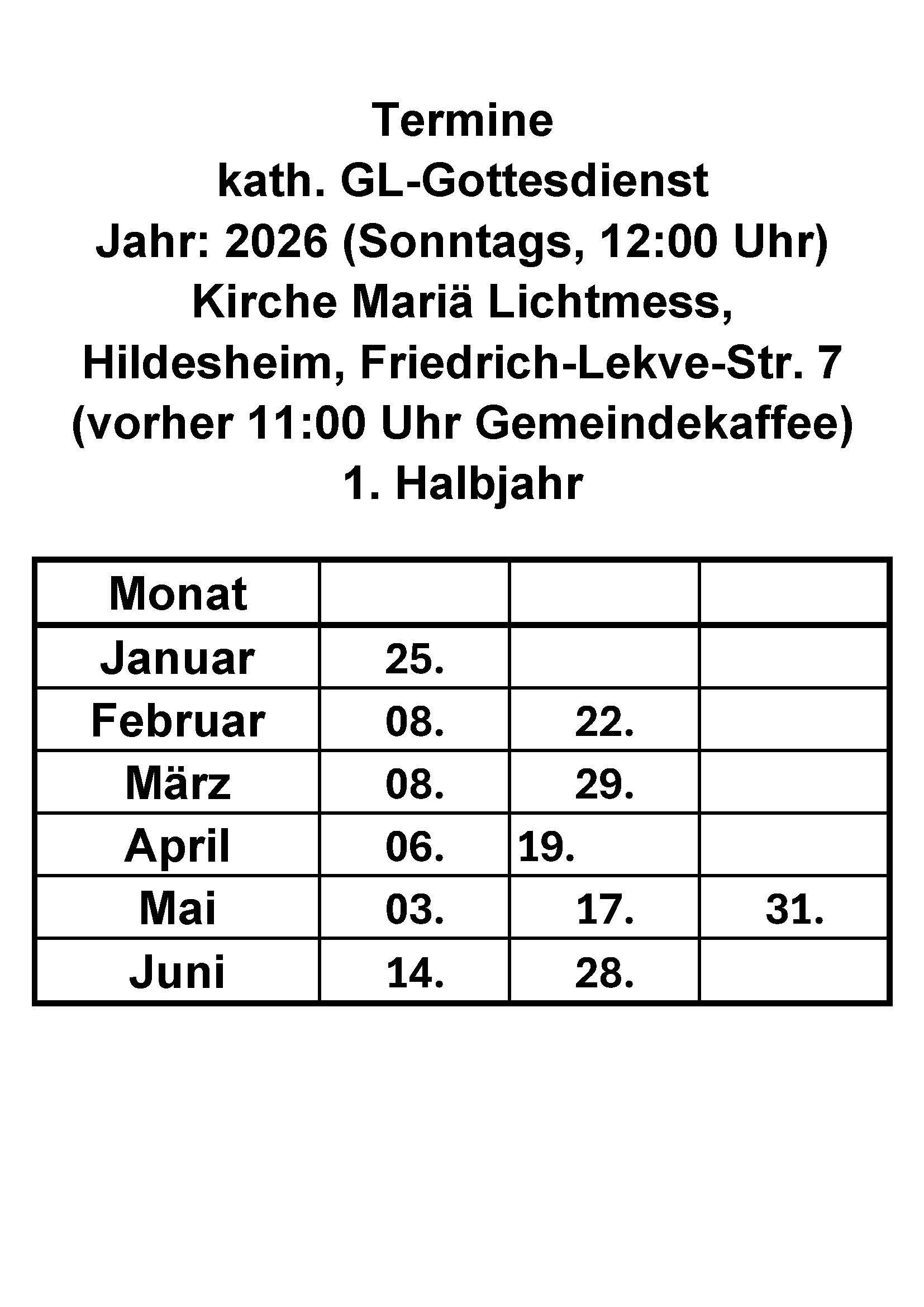 katholische Gottesdiensttermine 2026 - 1. Halbjahr zum Download