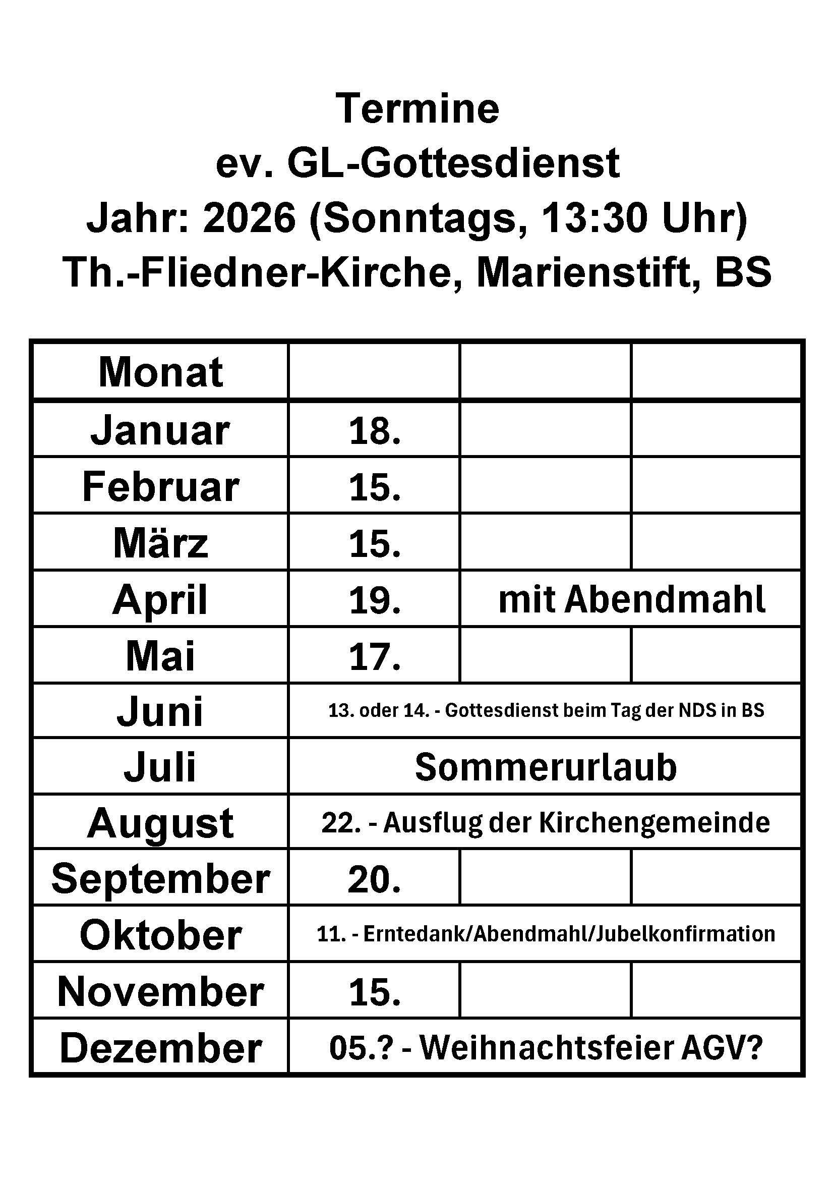 Gottesdienst am 19. Oktober 2025 fällt aus!!!